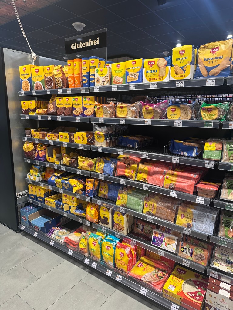 We found the supermarkets in Germany to be particularly good for gluten free, which was really helpful for making our picnics for our long train journeys! EDEKA Schlemmer Markt was a chain we had particular success in, but most German supermarkets offered a good gluten free selection. We even managed to find Schar products we’d never seen before so had to bring some treats back home with us! The one thing to be cautious about in German supermarkets is Haribo; whilst they are generally coeliac-safe in the UK, almost all of the Haribo made in Germany have a “may contain” warning. We visited the massive Haribo store in Hamburg and were disappointed to find that only one product was guaranteed to be gluten free; the Chamallows, though they were actually very good!
